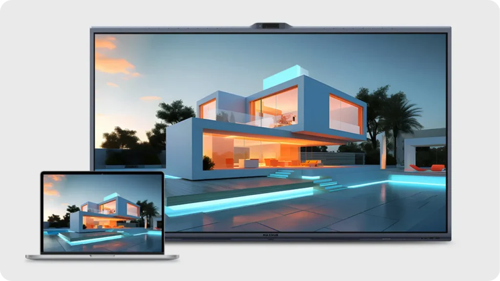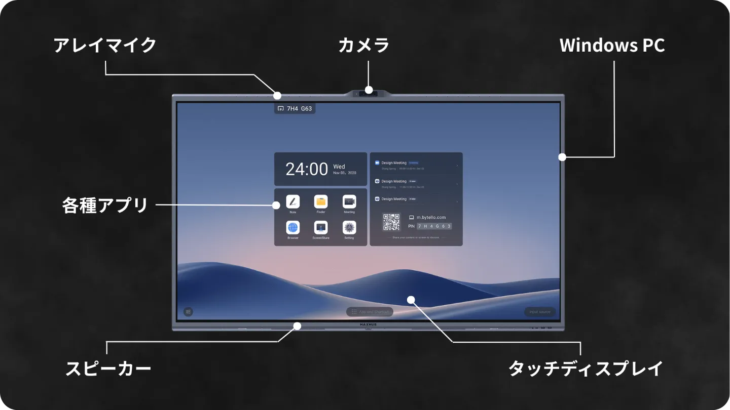 もう、プロジェクターの配線や、Webカメラの設定に時間を費やす必要はありません。 MAXHUBは、高画質カメラ・高性能マイク・スピーカー・PCをすべて内蔵した「オールインワン」モデル。