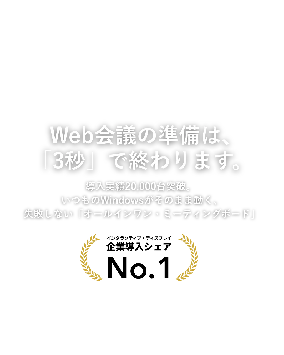 キャスター付きスタンドをご利用の場合、工事は一切不要です。 コンセントを1本挿すだけで、その日からすぐにお使いいただけます。もちろん、オフィスのレイアウトに合わせて、壁掛け設置(要工事)や、既存のテレビ会議システムとの入れ替えにも柔軟に対応可能です。